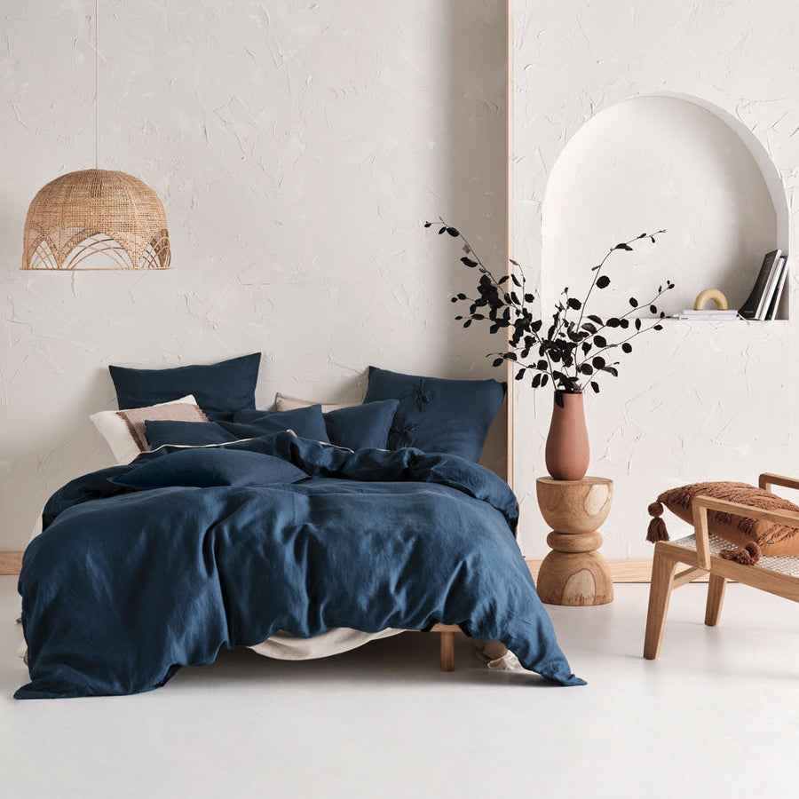 Nimes Navy Linen Quilt Cover Set | Double Bed