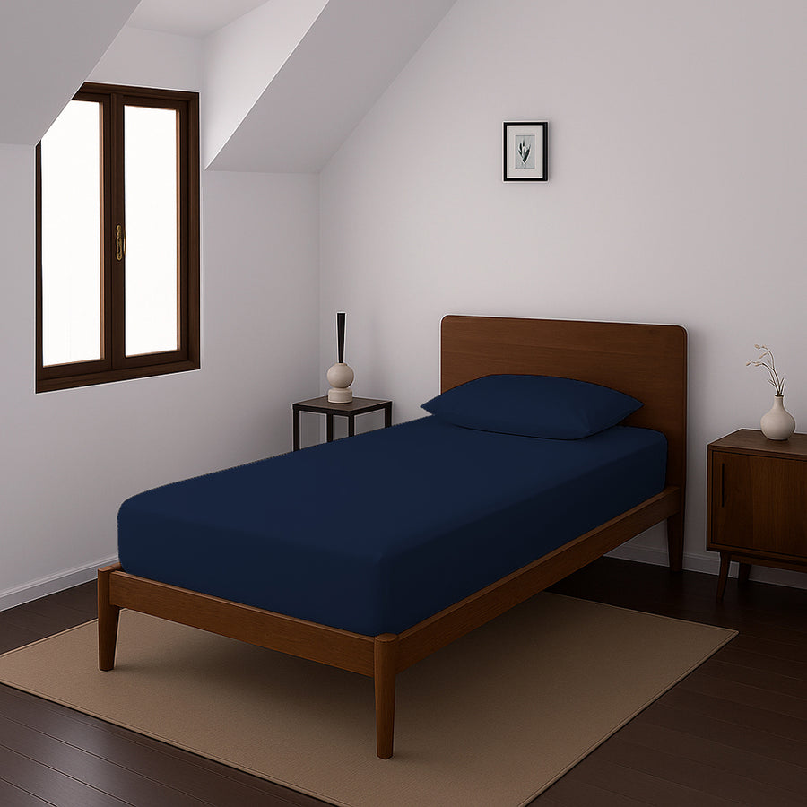 Casey Cotton Fitted Sheet 400TC Navy | Single Bed 60cm