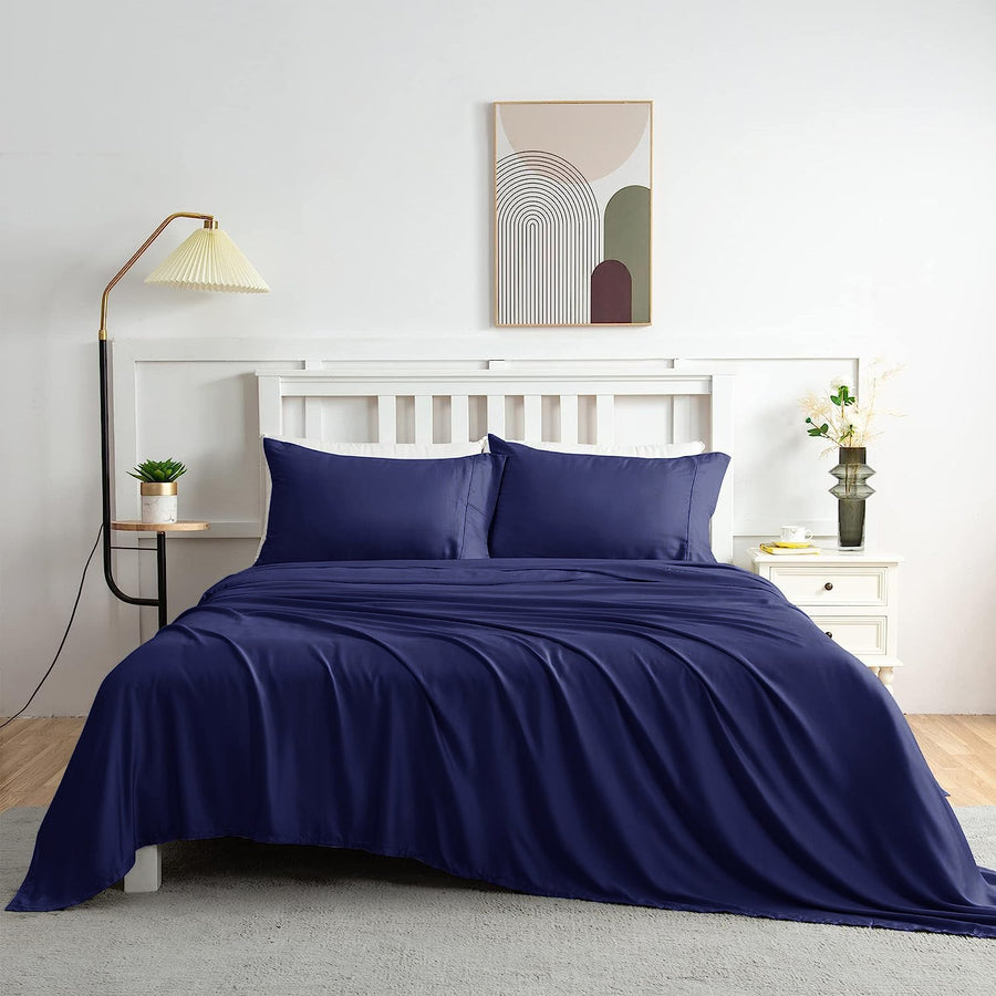 Casey Cotton Flat Sheet 400TC Navy | Single Bed Mega