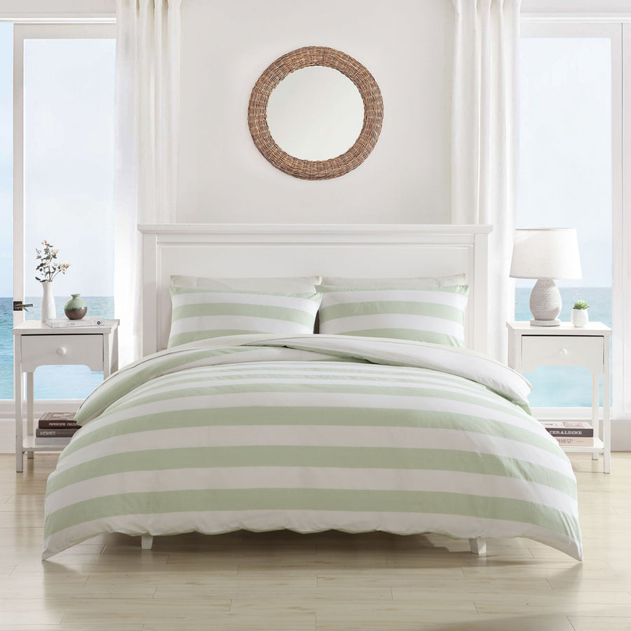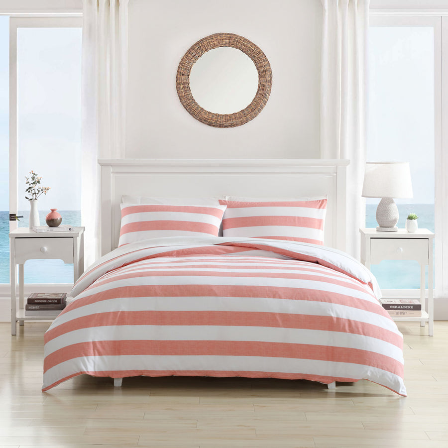 The main difference between a quilt cover and a bedspread/coverlet is that a quilt cover requires a quilt/doona insert. A bedspread/coverlet is a prefilled bedcover which can vary in thickness. A bedspread/coverlet is used for not only warmth but decoration as well. Quilt covers are the more popular choice, and My Linen has a full range of Tommy Bahama quilt covers available now.