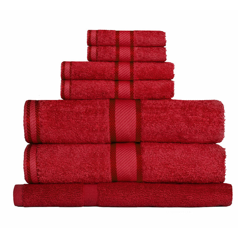 Treat Yourself with our 100% Combed Cotton Red 7pc Bath Towel Set that will give your bathroom an instant update. This luxuriously soft towel is made from 100% cotton so it feels great against your skin and absorbs more water. In several bold hues, it'll add a great pop of colour to a neutral bathroom, or provide balance to colourful, patterned pieces in a more eclectic bathroom.