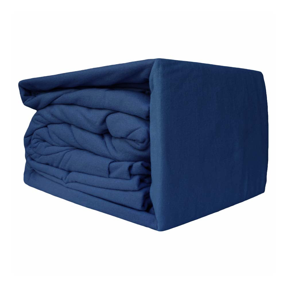 Ramesses 100% Egyptian Cotton Single Bed Sheet Set in Blue Depth, is made from Premium Plain Dyed 100% Egyptian Cotton Flannelette including a full elastic fitted Sheet with a 40cm wall.