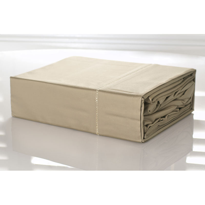 A Luxurious Linen Doeskin 1100 Thread Count 100% Egyptian Cotton Queen Sheet Set with a Sateen Finish. The Flat Sheet has a decorative Hem Stitch across the top of it and the Pillowcases are Cuffed and Piped, the Fitted Sheet is Fully Fitted with a 40cm Wall making them perfect for most pillowtop beds.