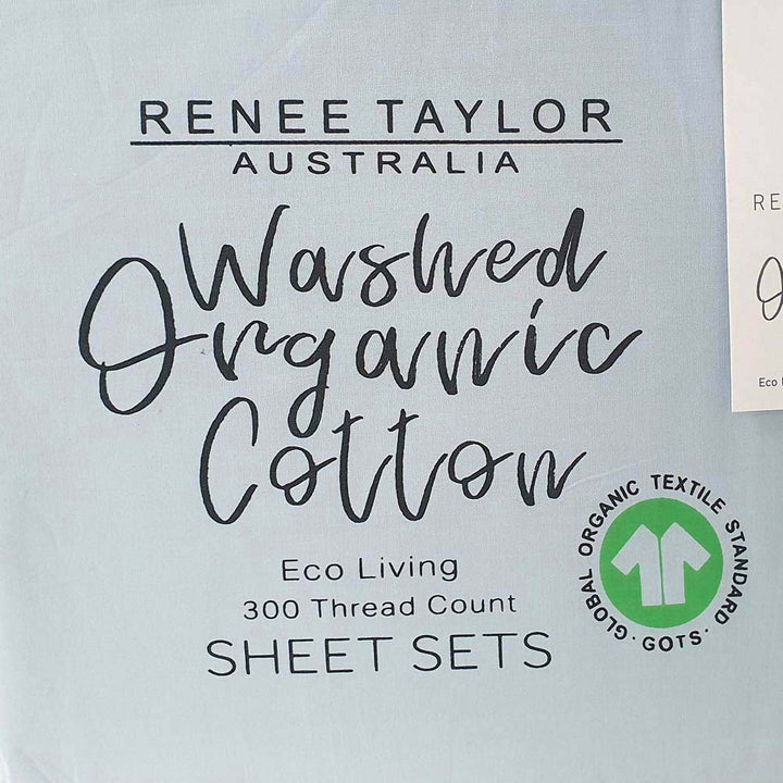 Renee Taylor 100% Organic Cotton Percale 300 Thread Count Baby Blue King 50cm Bed Sheet Sets are made from crisp, pure certified organic cotton. They are made from 300 thread count GOTS Organic cotton which is cultivated without toxic chemicals and finished without formaldehydes and other cheap smoothers. The long staple cotton produces stronger yarns that make your sheets crisper. Known for its breathability, your skin will love our organic cotton with no more allergies from invisible toxins. Includes a reusable laundry bag for easy storage.