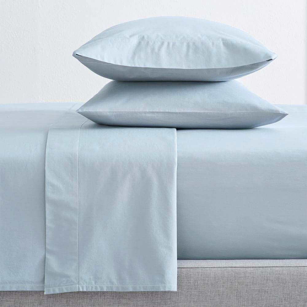 100% Organic Cotton Percale Sheet Set 300TC Baby Blue | Long Single Bed