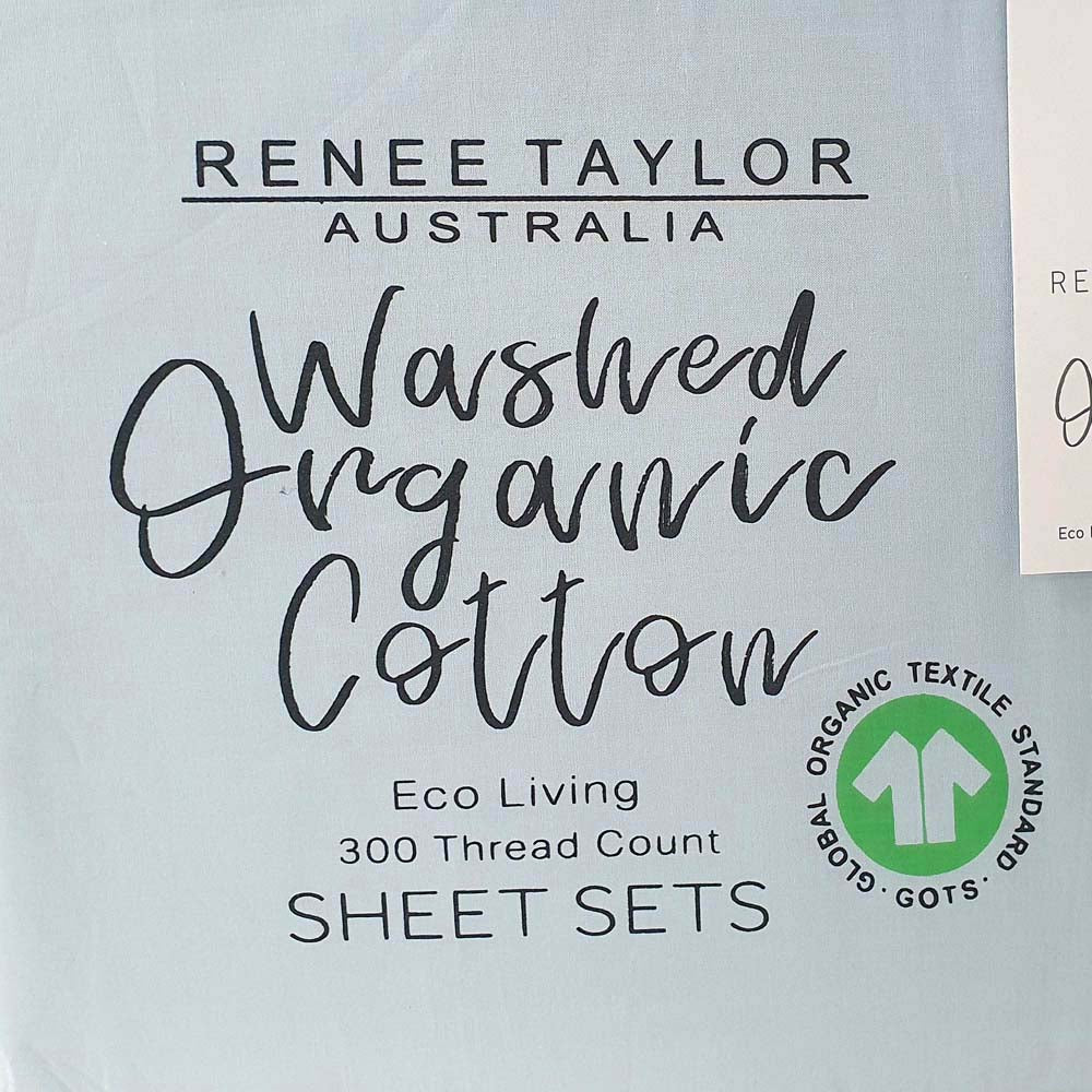 Renee Taylor 100% Organic Cotton Percale 300 Thread Count Baby Blue Single Bed Sheet Sets are made from crisp, pure certified organic cotton. They are made from 300 thread count GOTS Organic cotton which is cultivated without toxic chemicals and finished without formaldehydes and other cheap smoothers. The long staple cotton produces stronger yarns that make your sheets crisper. Known for its breathability, your skin will love our organic cotton with no more allergies from invisible toxins. Includes a reusable laundry bag for easy storage.
