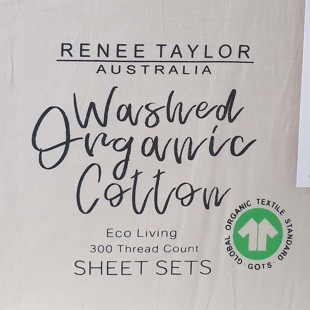 Renee Taylor 100% Organic Cotton Percale 300 Thread Count Moonbeam Queen Bed Sheet Sets are made from crisp, pure certified organic cotton. They are made from 300 thread count GOTS Organic cotton which is cultivated without toxic chemicals and finished without formaldehydes and other cheap smoothers. The long staple cotton produces stronger yarns that make your sheets crisper. Known for its breathability, your skin will love our organic cotton with no more allergies from invisible toxins. Includes a reusable laundry bag for easy storage.