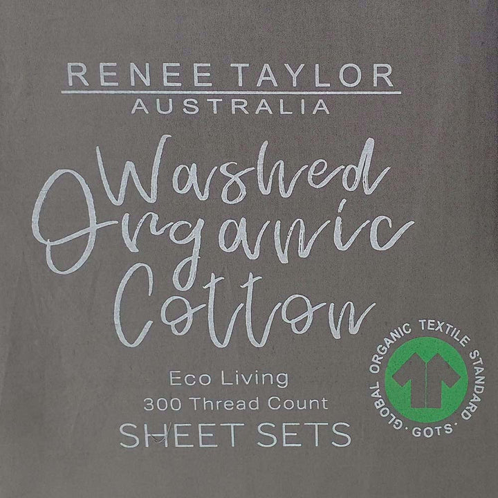 Renee Taylor 100% Organic Cotton Percale 300 Thread Count Steel Grey Double Bed Sheet Sets are made from crisp, pure certified organic cotton. They are made from 300 thread count GOTS Organic cotton which is cultivated without toxic chemicals and finished without formaldehydes and other cheap smoothers. The long staple cotton produces stronger yarns that make your sheets crisper. Known for its breathability, your skin will love our organic cotton with no more allergies from invisible toxins. Includes a reusable laundry bag for easy storage.