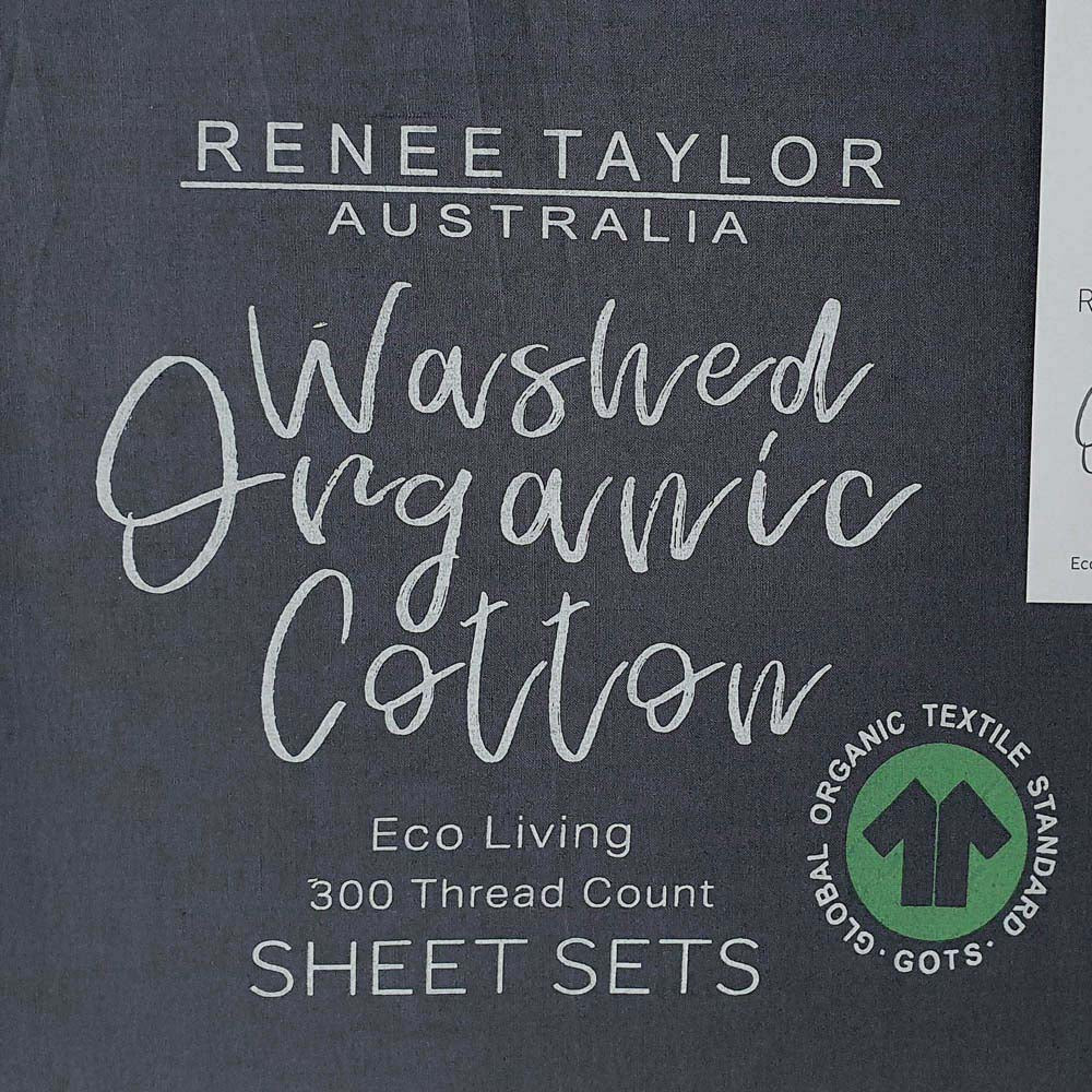 Renee Taylor 100% Organic Cotton Percale 300 Thread Count Turbulence Queen 50cm Bed Sheet Sets are made from crisp, pure certified organic cotton. They are made from 300 thread count GOTS Organic cotton which is cultivated without toxic chemicals and finished without formaldehydes and other cheap smoothers. The long staple cotton produces stronger yarns that make your sheets crisper. Known for its breathability, your skin will love our organic cotton with no more allergies from invisible toxins. Includes a reusable laundry bag for easy storage.