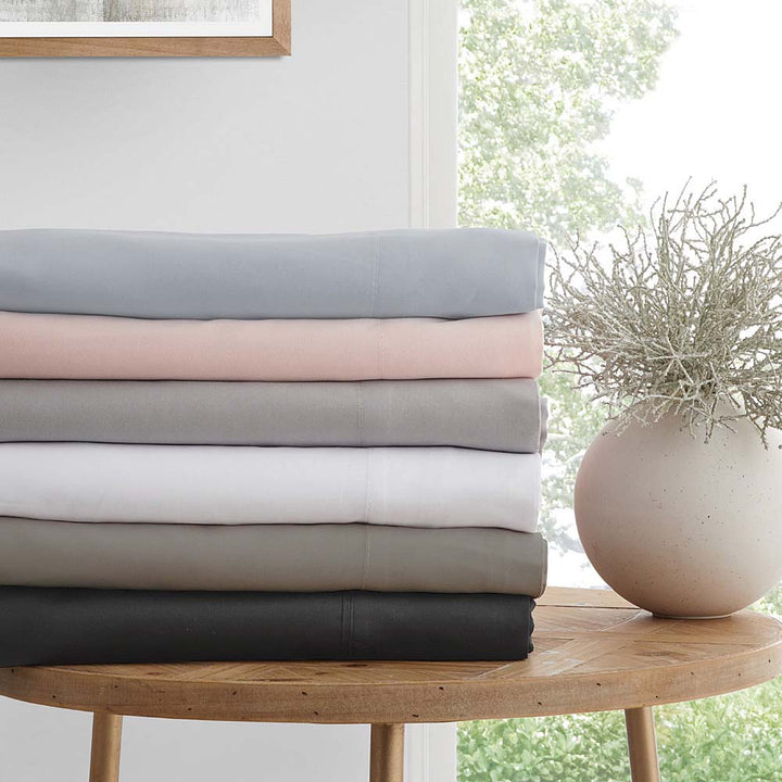 Logan and Mason 300TC Cotton Percale White King Bed Sheet Set is constructed from naturally breathable cotton. The sturdy percale weave gives the sheets a matte finish and a crisp, cool feel that improves with every wash. Available in six contemporary colours.