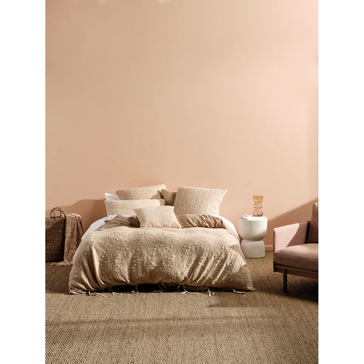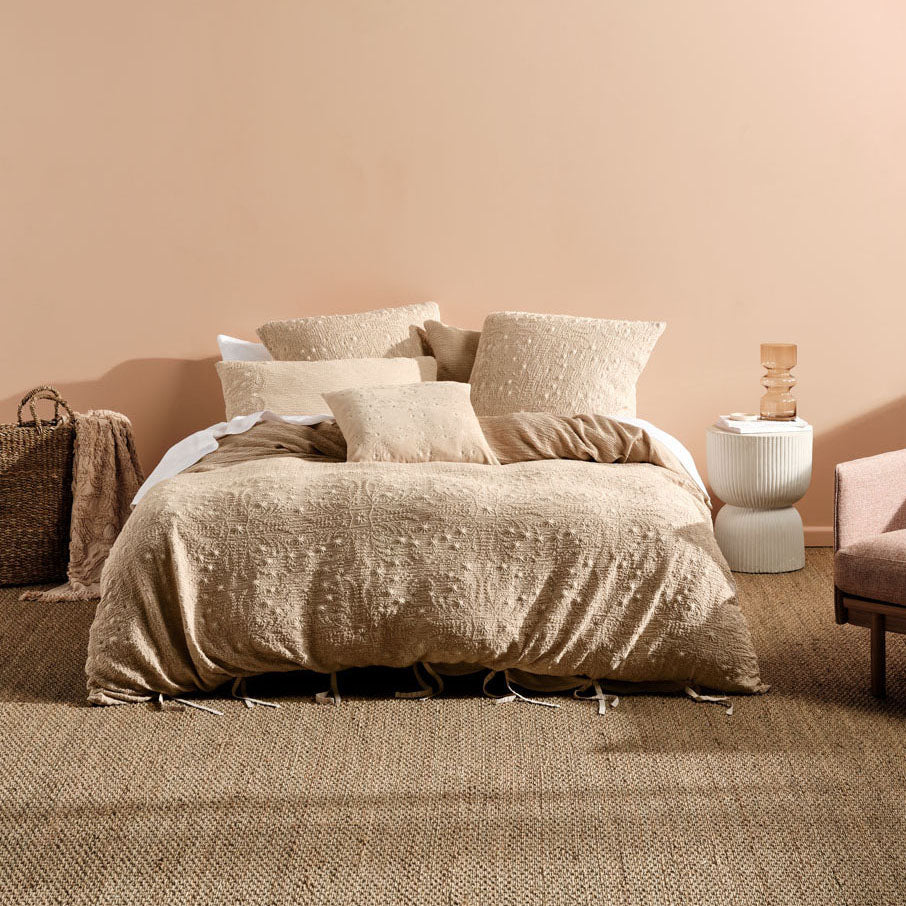Linen House Abigail Sand Queen Bed Quilt Cover Set is a delicately embroidered and stone-washed beauty that caters to every diehard romantic. Tie closures add to this alluring, all-cream theme, which looks ravishing with its matching embroidered European pillowcases and cushion in cotton velvet.