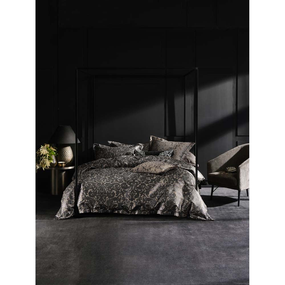 Grace by Linen House Adalina Black Queen Bed Quilt Cover Set is a look that belongs in your master bedroom. Constructed from an ultra-glam jacquard, this design includes lurex for added sparkle and is trimmed with a self-tailored finish and embroidered border detail. Layer this richly textured set with its coordinating cushions and a pair of its tailored European pillowcases.