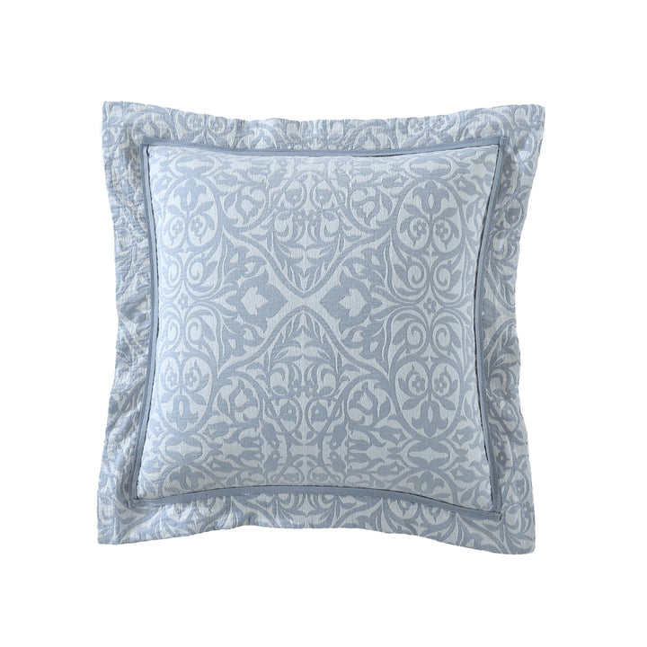 Introducing Althea Denim Square Filled Cushion, a beautiful fusion of tradition and modernity. Featuring a classic damask pattern intricately woven in a cotton jacquard, Althea showcases a contemporary colour palette of soft denim blue and crisp white. The addition of a matte herringbone tape, adds a refined touch, enhancing the overall elegance and sophistication of this timeless piece. Perfect for those seeking to elevate their bedroom decor with a blend of classic charm and modern style.