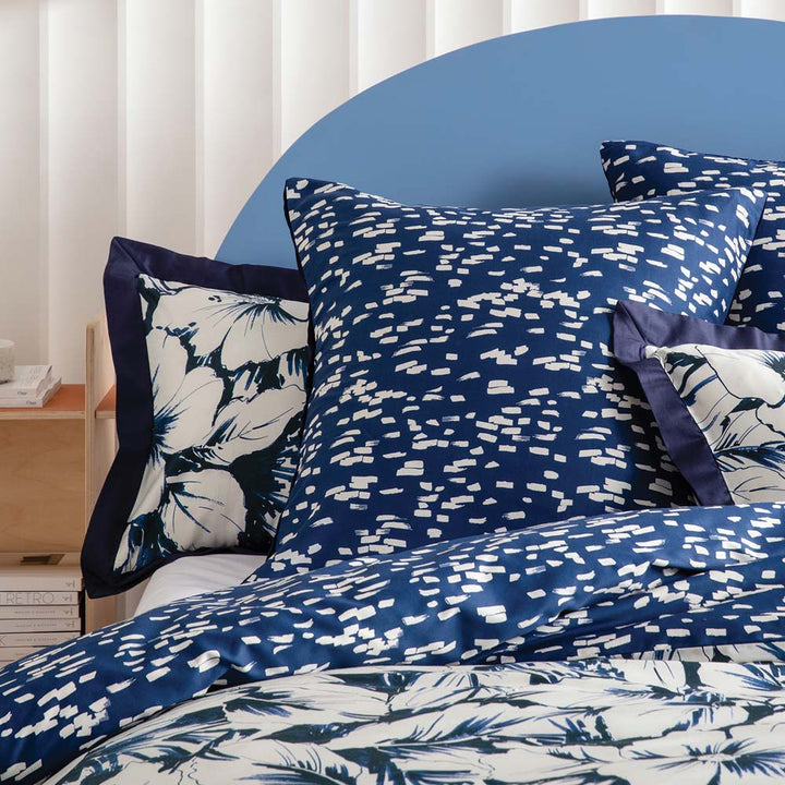 KAS Alto European Pillowcase brings a coastal-inspired look into your bedroom. Featuring a linear pattern, bordered by a statement flange in deep navy. Complete the look with the Alto quilt cover set.