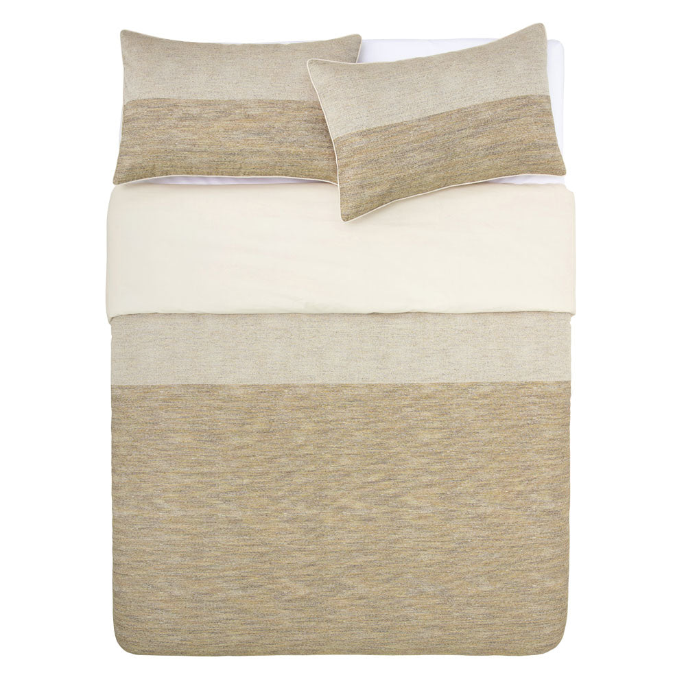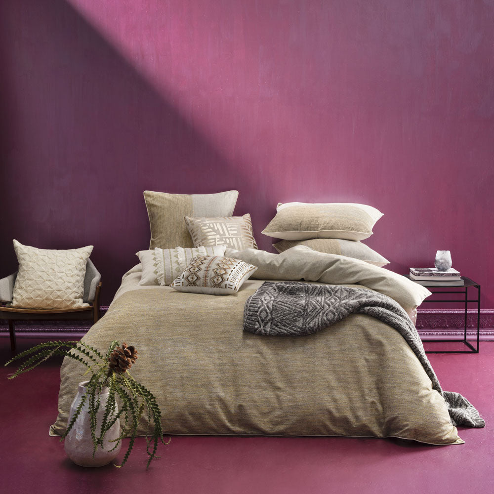 For a bedroom that exudes opulence, the KAS Amara Queen Bed Quilt Cover Set adds an unrivalled layer of luxe. Using a luxurious gold metallic thread, the simplicity of the two-toned woven jacquard creates the ultimate style statement. The quilt is beautifully finished with a contrasting piped edge and a plain cotton percale reverse.