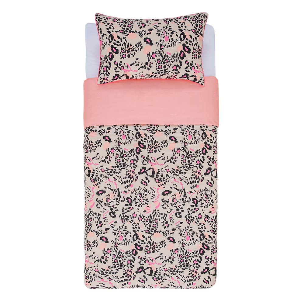 KAS Kids Animal Double Bed Quilt Cover Set is sure to be a roaring favourite. The Animal quilt cover set will create jungle vibes in your little one’s bedroom. An animated leopard print features highlight pops of coral, and is finished with contrast piping and reverse for a contemporary look.