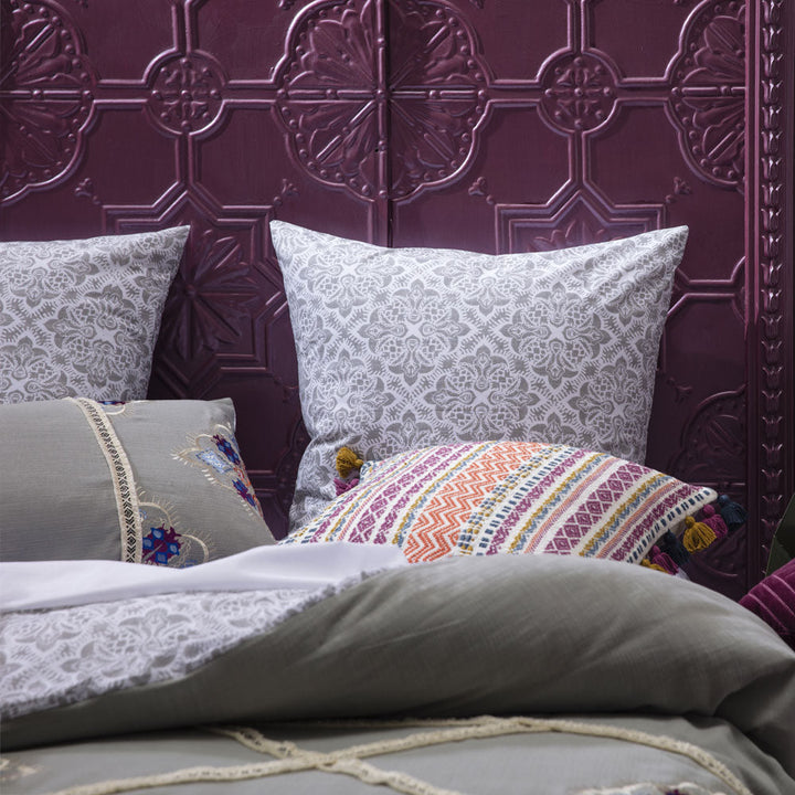 Set to be a classic, the KAS Annette Multi European Pillowcase offers a refreshing take on a traditional pattern, featuring a subtle medallion print in a complementary grey tone, finished with a simple knife edge.
