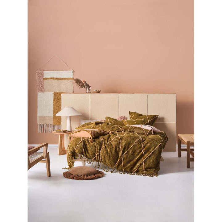 Linen House Asha Bronze Queen Bed Quilt Cover Set is warm, textural and made from tufted cotton, Asha features stylish tasseled fringes and terracotta details over a luxe bronze hue, exuding every inch of retro-chalet glamour for your winter aesthetic. Pair this chenille set with a pair of our coordinating European pillowcases or mix and match it with pure linens and tufted cushions to elevate it further.