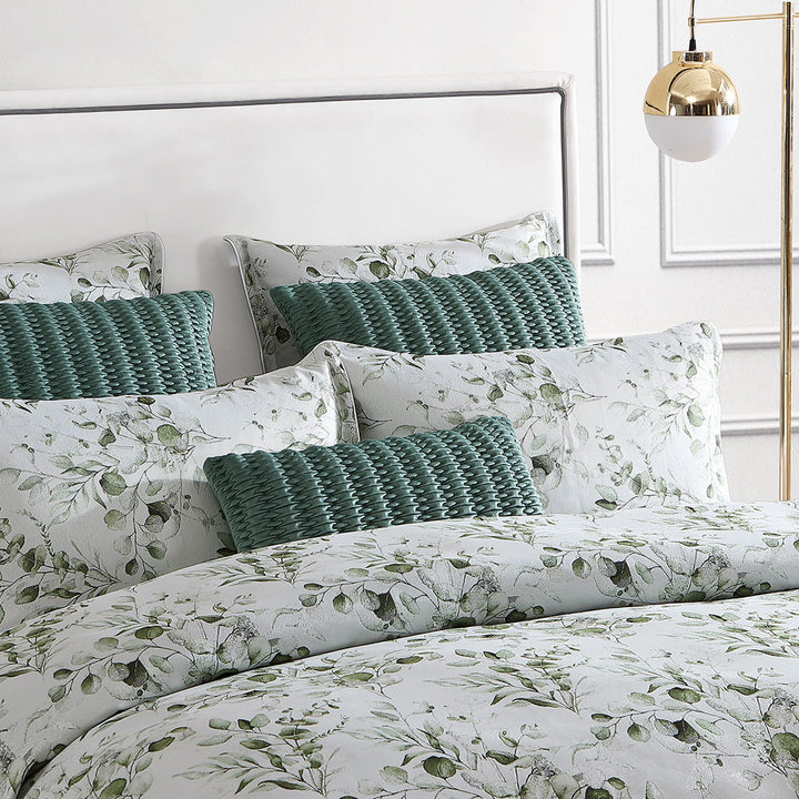 Private Collection Asher Green Queen Bed Quilt Cover Set brings freshness of Spring to the bedroom. Light and airy, the foliage is featured in tonal greens, with a considered balance of light and dark shades. Layer in luxury with Asher's reversible European pillowcases, backed with softly textured velvet for multiple styling options.
