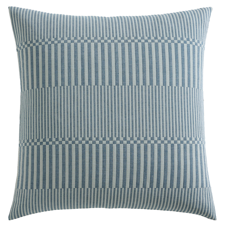 The Axis Aegean European Pillowcase blends matelassé texture with contrasting yarn-dye stripes, creating a bold geometric design that draws the eye upward. The tonal hues of teal and sage add a refreshing, summery vibe to your space. Finished with a modern self-tailored flange, this piece brings a sophisticated, contemporary touch to your interior styling.