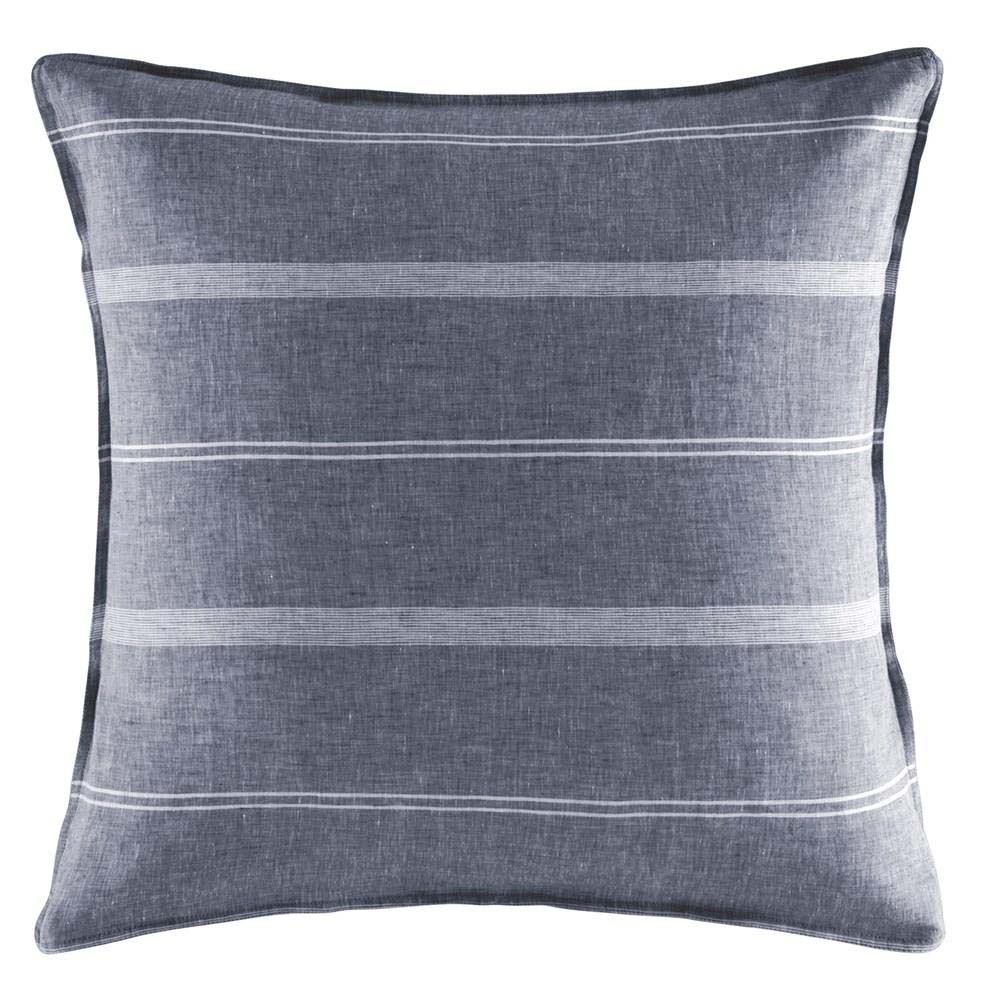 KAS Balmoral Navy European Pillowcase creates a refined aesthetic. Crafted from the softest linen cotton blend, its washed denim-look base is accented with stripes in varying weights for a simple yet stylish impact.