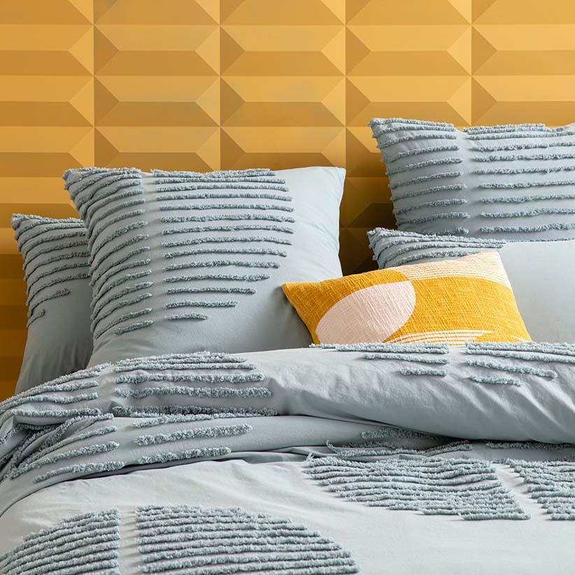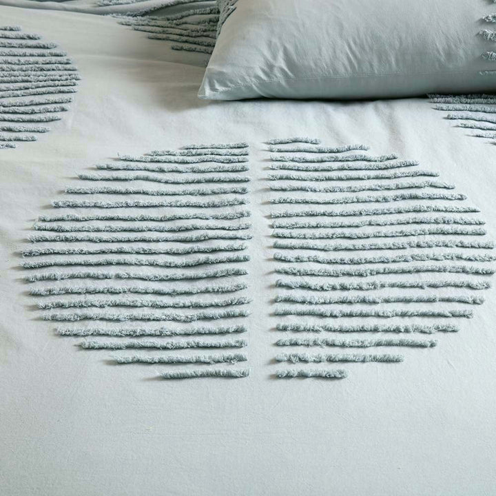KAS Barlow Seafoam King Bed Quilt Cover Set is effortlessly elegant. The Barlow quilt cover will make a dreamy addition to any bedroom. Featuring a raised linear design forming large statement making circles, the timeless tufting technique is tonal in colour, allowing texture to be the hero. Tailored with a knife-edge finish, this quilt cover is sophisticated in its simplicity.