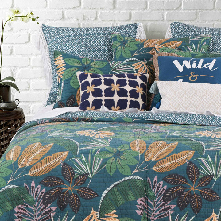 Classic Quilts Beckett Super King Coverlet Set features stunning multicoloured tropical blooms on a green base. The design is printed on a cotton outer, and contains a light-loft cotton fill for breathability and comfort. The reverse is a modern thatched geometric design in the same green hue, to ensure that the coverlet coordinates with your bedroom.