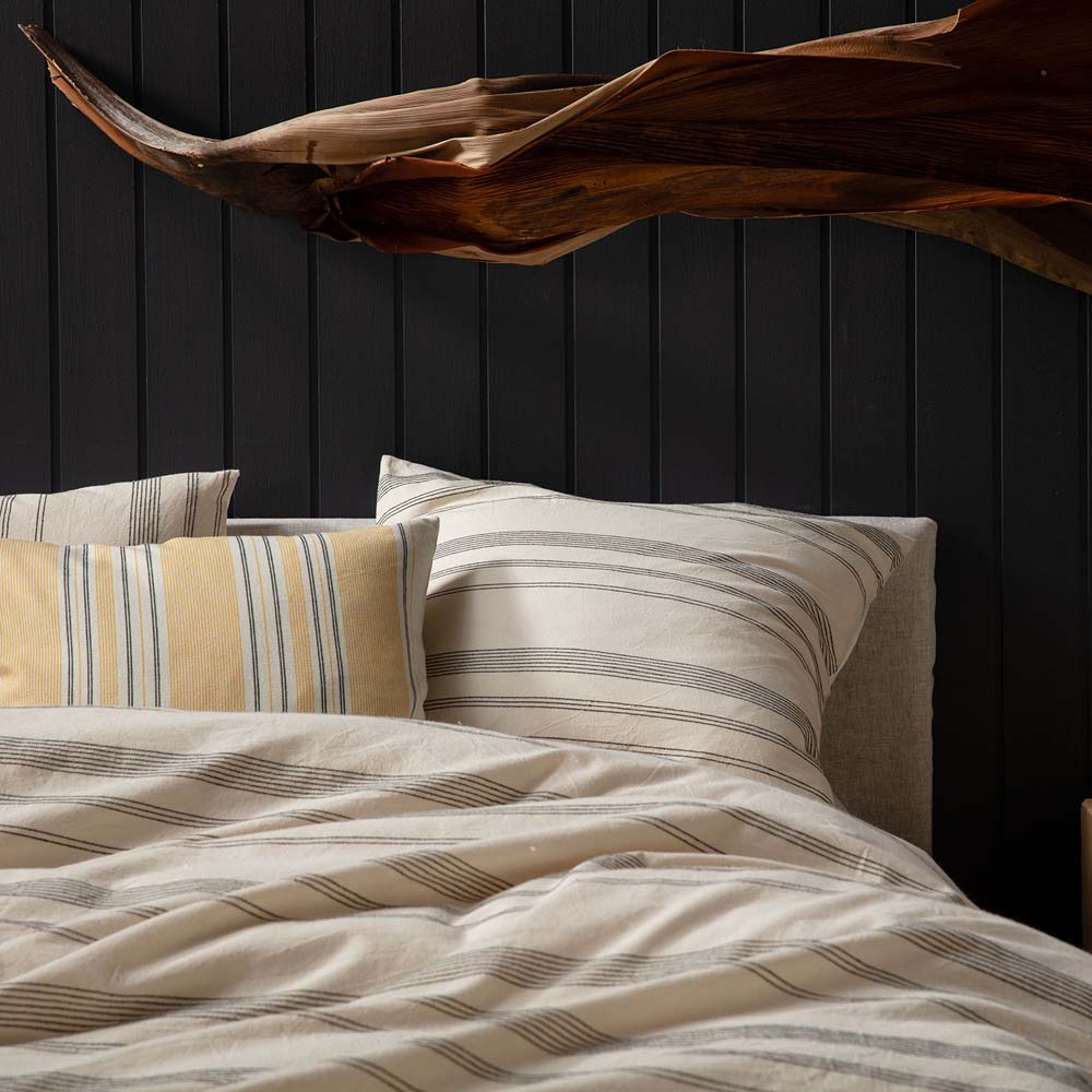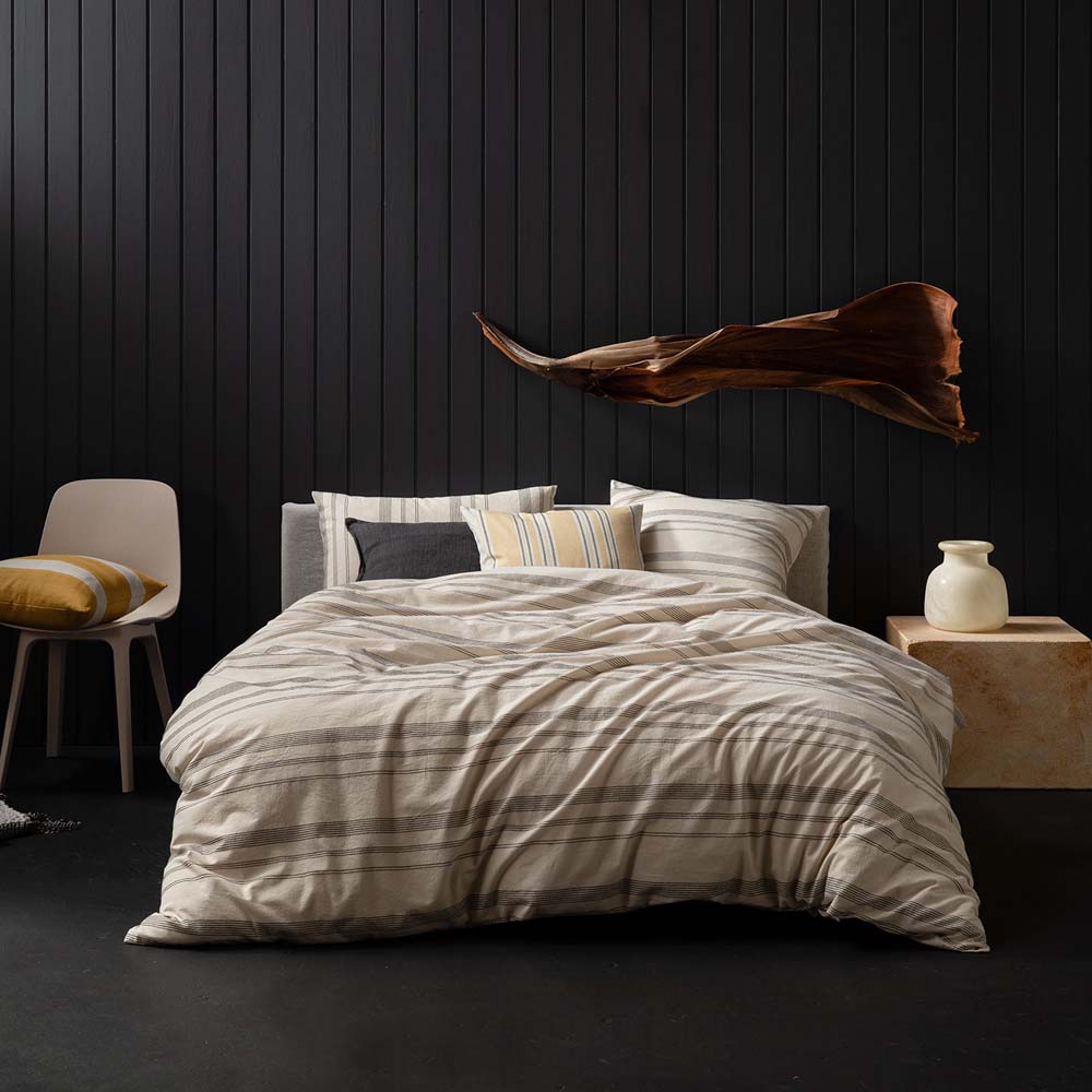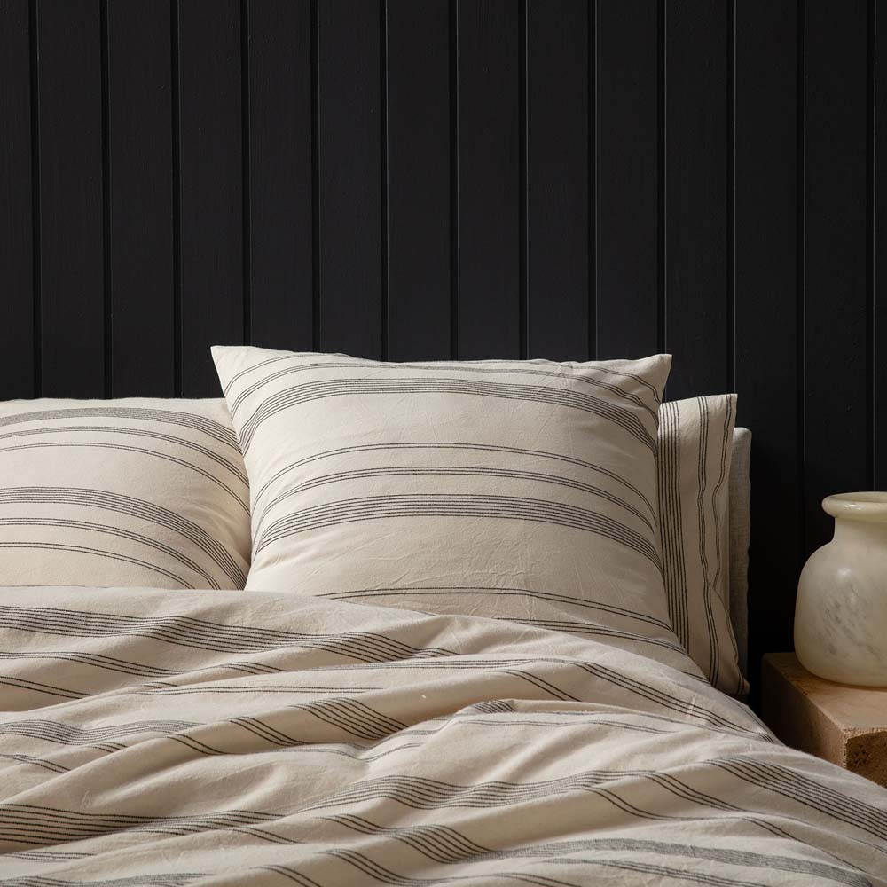 KAS Bexley Natural Super King Quilt Cover Set is crafted from a refined cream woven washed cotton that will instantly complement any interior, the cover features linear black stripes in soft weights for a simple and modern look.