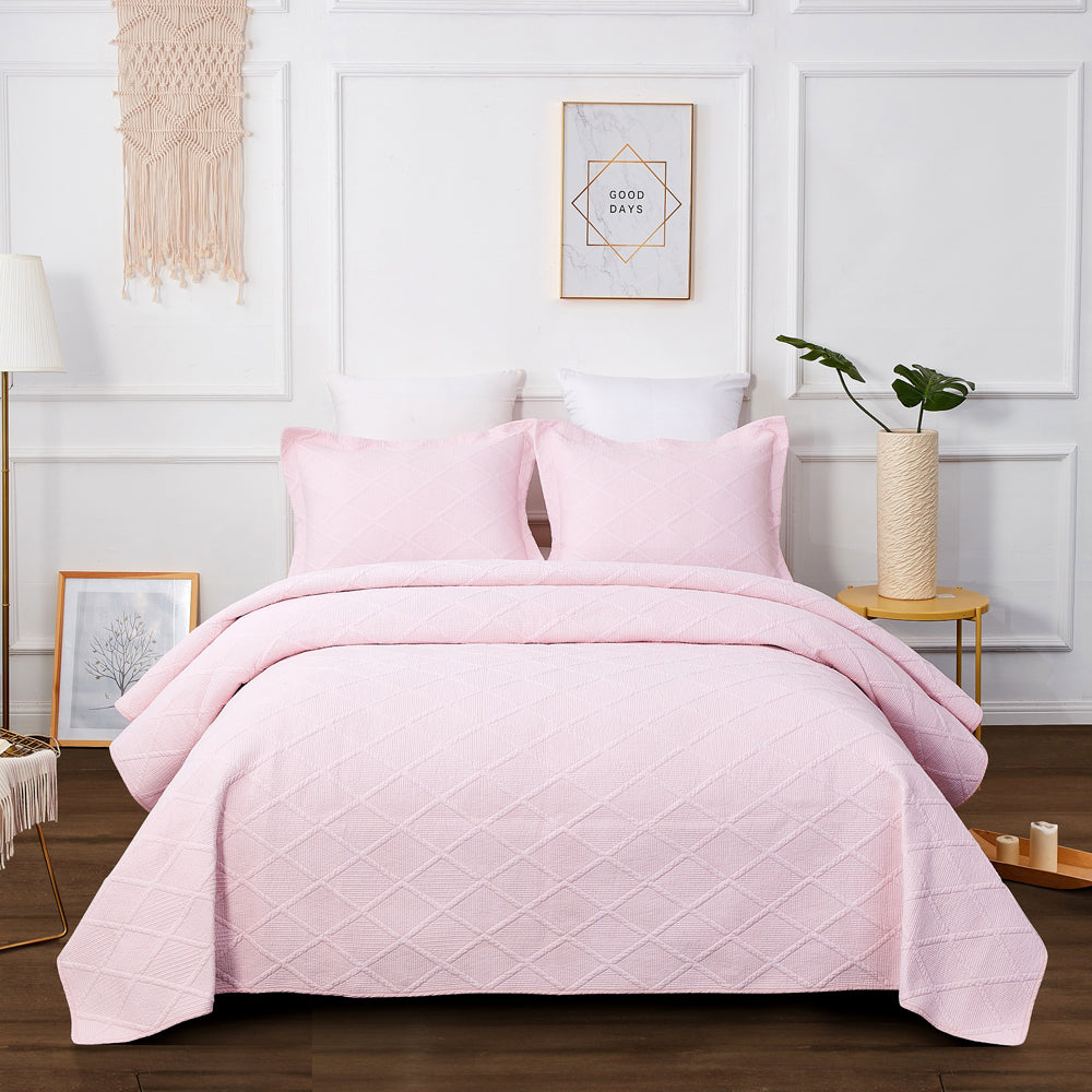 Classic Quilts Blush Pink Queen Bed Coverlet Set features a quilted geometric design in a charming blush pink.