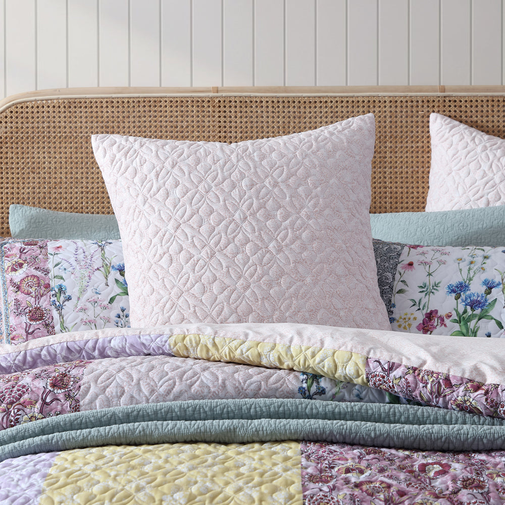 Platinum Logan and Mason Bodhi Pink Queen Bed Quilt Cover brings nature indoors. Featuring a range of Logan & Mason prints, including floral blooms, silhouettes, Jacobean and damasks overlayed in a patchwork style. With a provincial feel in deep and earthy inspired hues, create warmth within your interior during the colder winter months. An element of texture enhances this design with the use of an organic pattern quilted over the top.