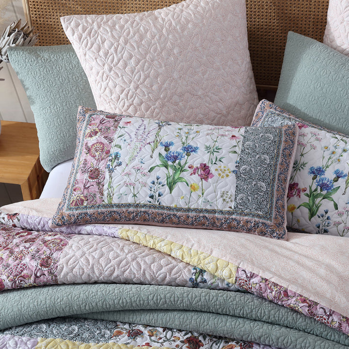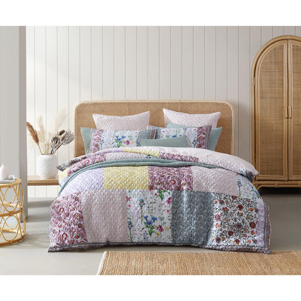 Platinum Logan and Mason Bodhi Pink Super King Quilt Cover brings nature indoors. Featuring a range of Logan & Mason prints, including floral blooms, silhouettes, Jacobean and damasks overlayed in a patchwork style. With a provincial feel in deep and earthy inspired hues, create warmth within your interior during the colder winter months. An element of texture enhances this design with the use of an organic pattern quilted over the top.