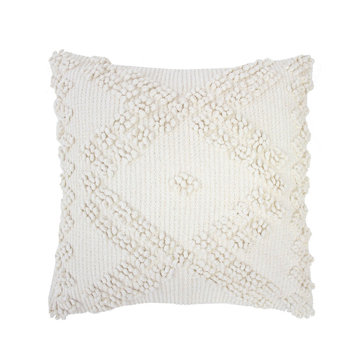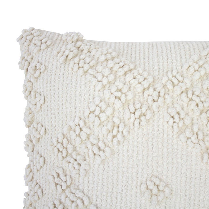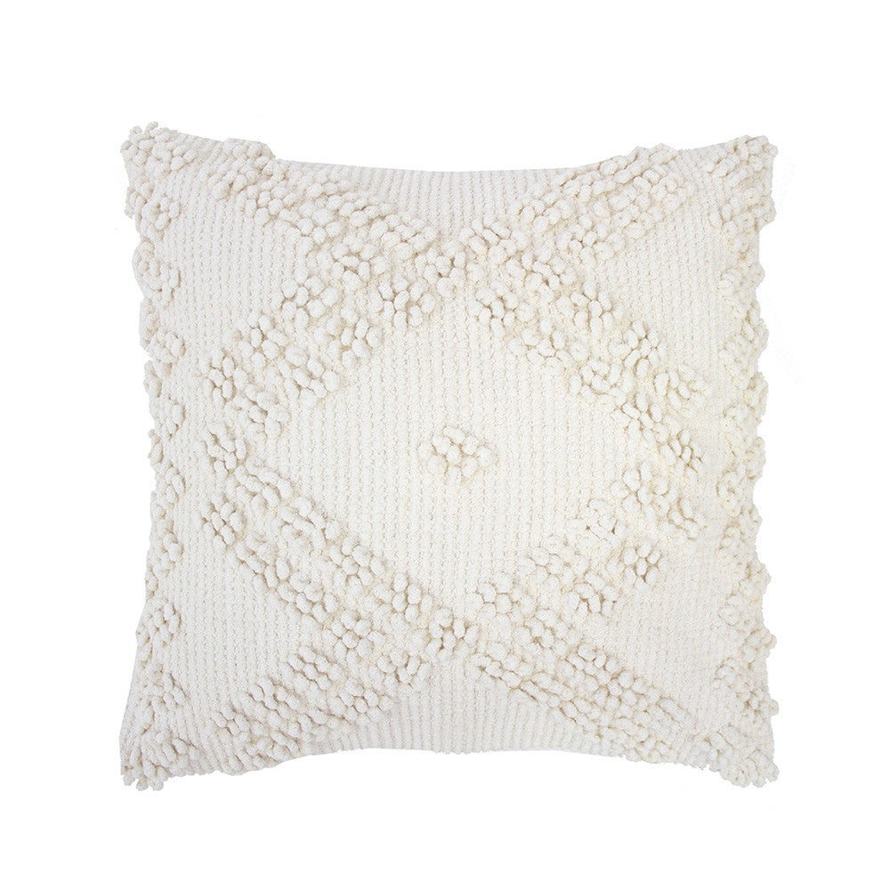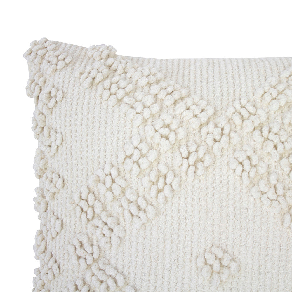 Bambury Bronte Ivory Square Filled Cushion has been woven from a soft chenille yarn. The perfect design for adding texture into your room, it is also easy to pair with other decor and accessories. The cushion features a contemporary diamond shape pattern created during the weaving process of the chenille yarns. Includes removable cushion fill.