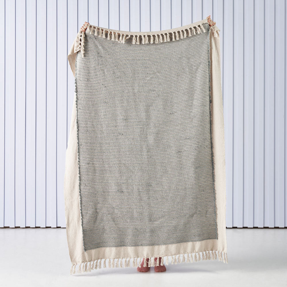 Linen House Cadiza Mineral Throw is just the right throw for any space. Its woven design in an on-trend and stylish mineral hue enjoys a beautifully soft handle, complete with a fringed edge.