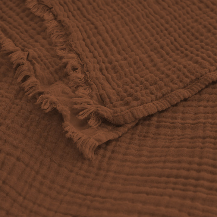 Capri Rust Cotton Throws are a stylish way to dress your space this season. Featuring a 4 layer gauze cotton fabric with natural frayed edge, these modern throws are breathable, soft and cosy. Capri Throw will add instant charm to your home décor.