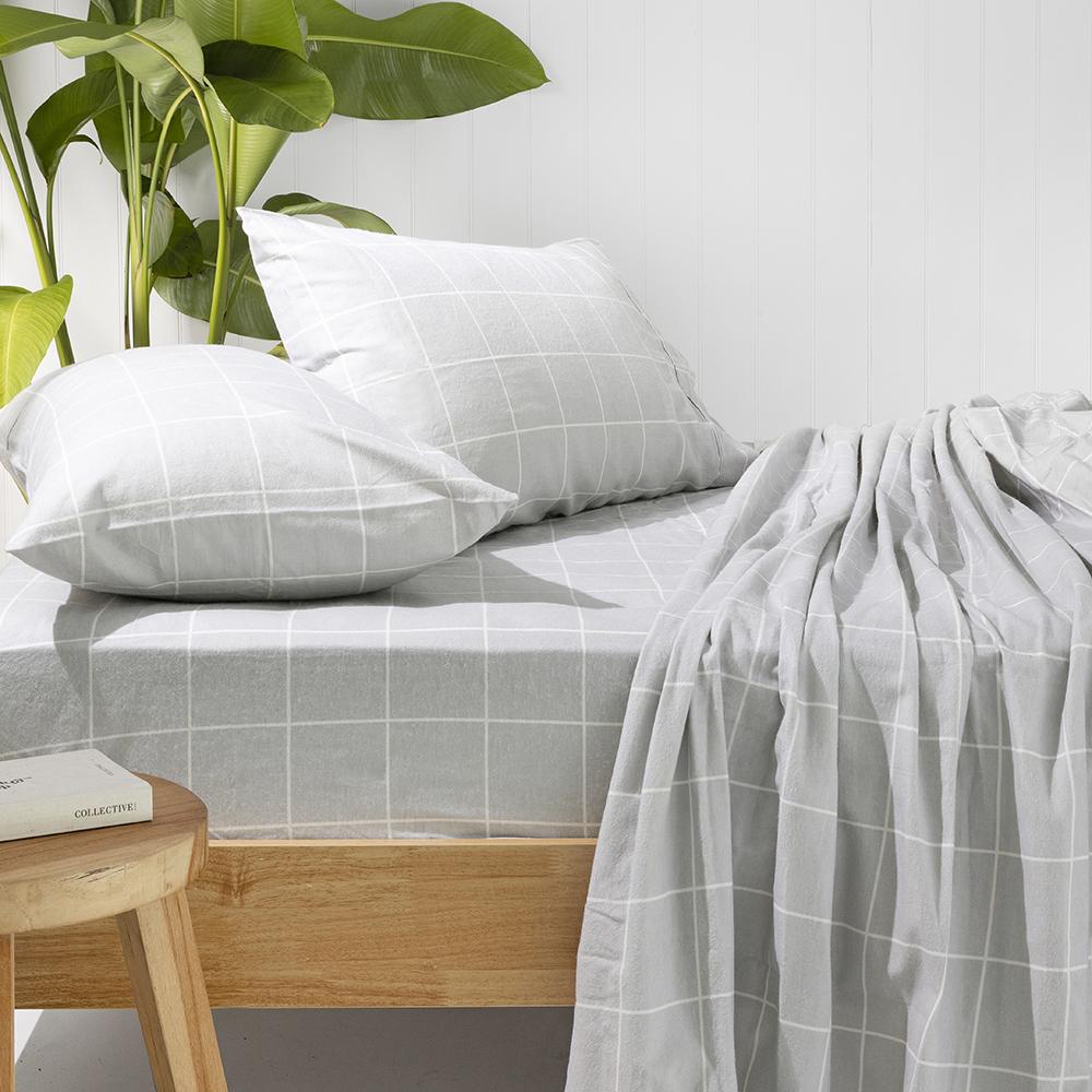 Bambury Carrington Silver Flannelette Single Bed Sheet Set is made from 100% cotton, perfect for cosying up with this winter. The fabric has been brushed on both sides after weaving which creates a wonderful texture and helps to hold in warmth. Designed with a thin white check pattern on a silver grey background, this flannelette sheet set is must-have this winter!