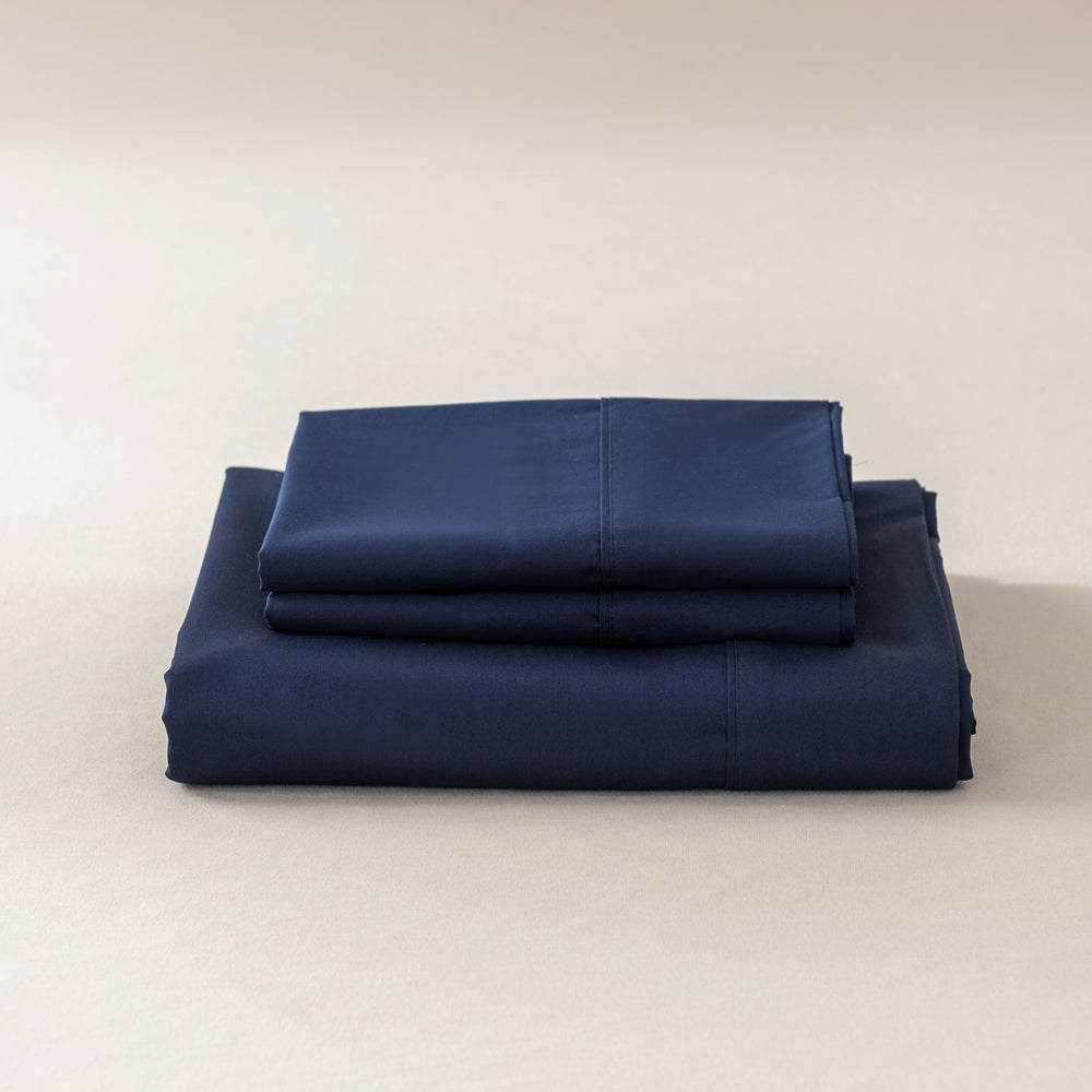 Casey Cotton Sheet Set 400TC Navy | Super King Bed 40cm