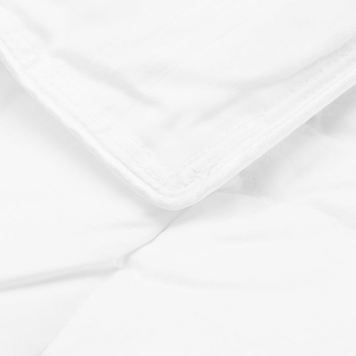 This white duck down super king duvet is ideal for use in Autumn, Spring and Winter months. It has a baffled cassette construction using a soft high thread count cotton down-proof casing. Baffled cassette construction. 10 year guarantee. Down proof cotton casing with 233 thread count fabric. Decorative piping.