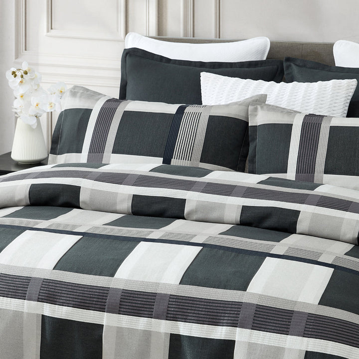 Private Collection Conrad Silver King Bed Quilt Cover Set features classic checks with a new attitude. The daring scale and urban palette seamlessly integrate into the contemporary home. Features 3cm Self Flange Concealed Button Closures