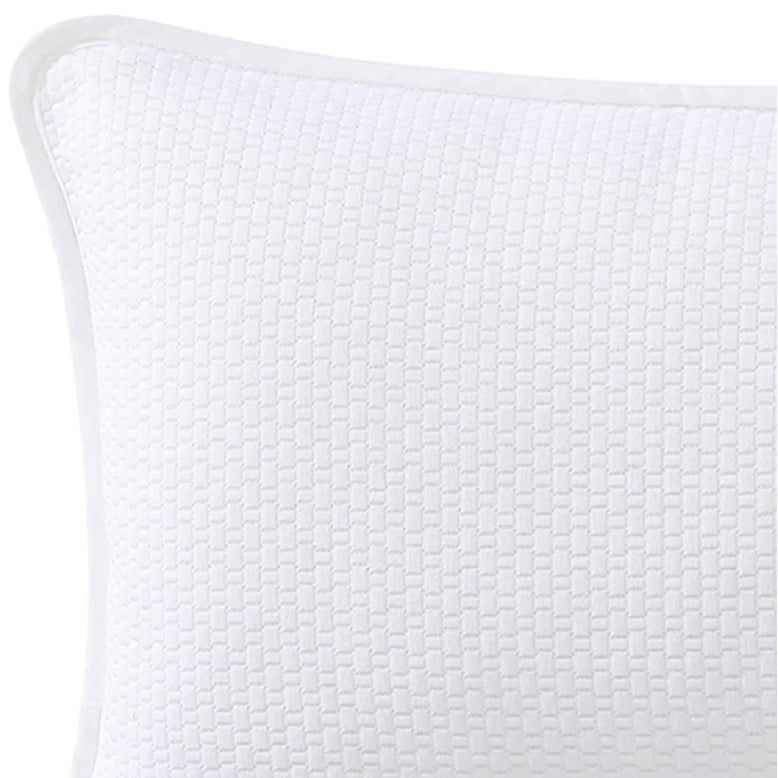 Private Collection Cornell White Pillowsham Pair brings beautiful texture to the bedroom with its white-on-white embossed basketweave pattern. Simple, yet sophisticated, the rounded edges are tailored with cotton sateen binding.