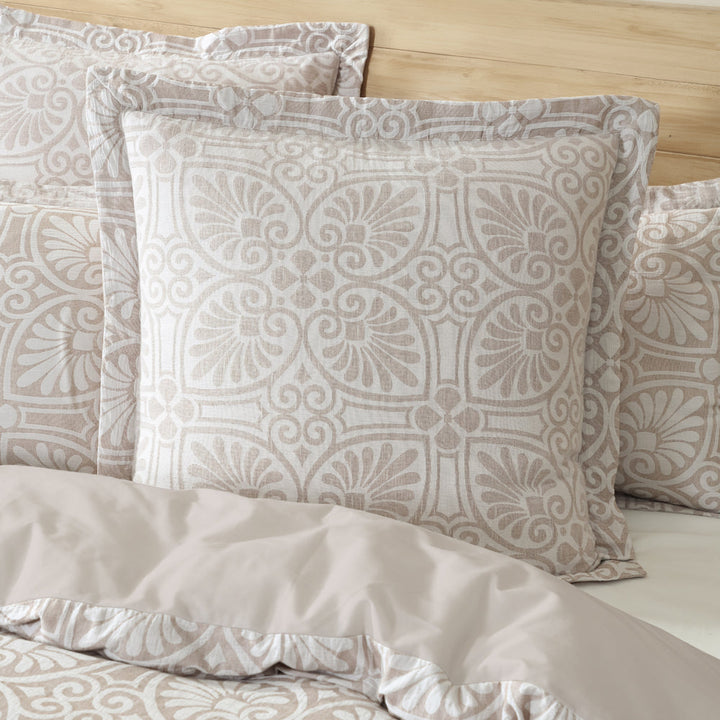 Private Collection Dakota Stone Square Filled Cushion is inspired by the popular trend Boho and mixes tribal, ornamental and ethnic aesthetic to create a mandala tile repeat. The design incorporates a simple plain dyed attached flange that creates a refined finish to the overall design. In organic and natural colour options of Fog and Stone, you will be able to pair this beautiful design with any colour palette.