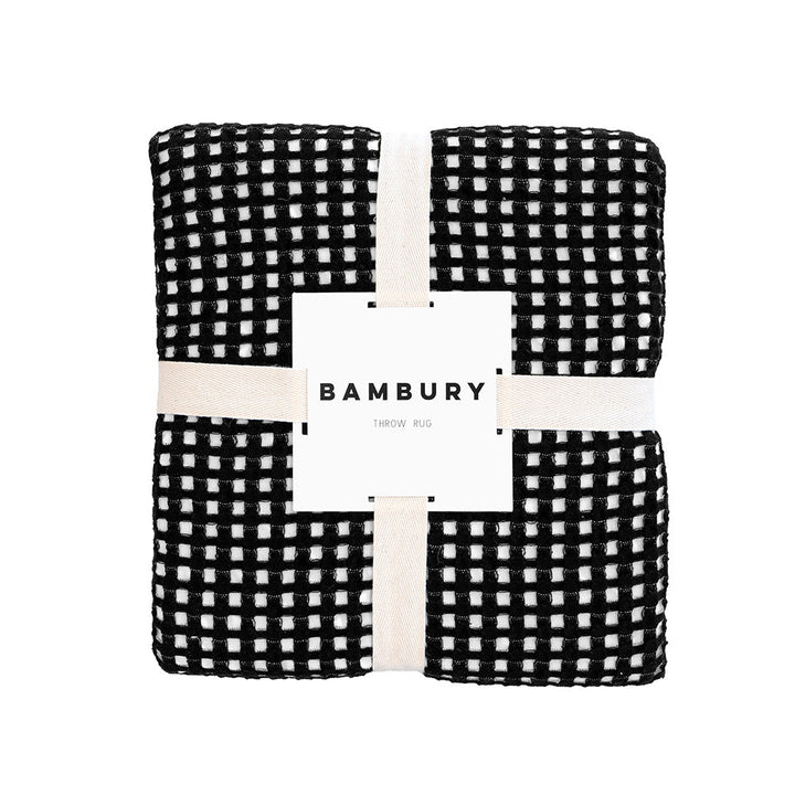 Bambury Dora Black Throws are crafted from a two-toned waffle fabric that has luxurious texture and aesthetic appeal. The throw is reversible, with one colour more dominant on the front and the other colour more dominant on the reverse. Coordinating cushions are also available while stocks last.