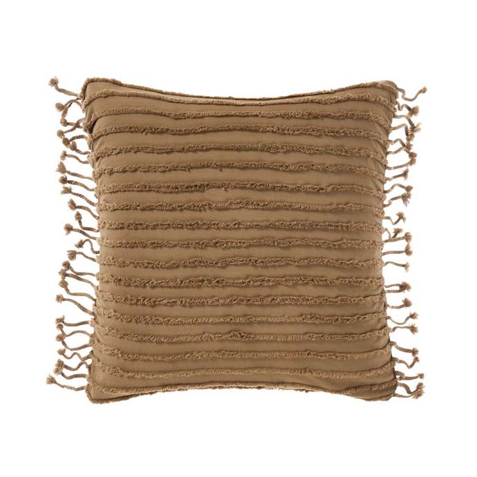 Linen House Dunaway Timber European Pillowcase enjoys tufted cotton chenille stripes on a woven, speckled cotton ground. Finished with plaited tassels, this winter's delight will add warm and comfort to your bedroom style.