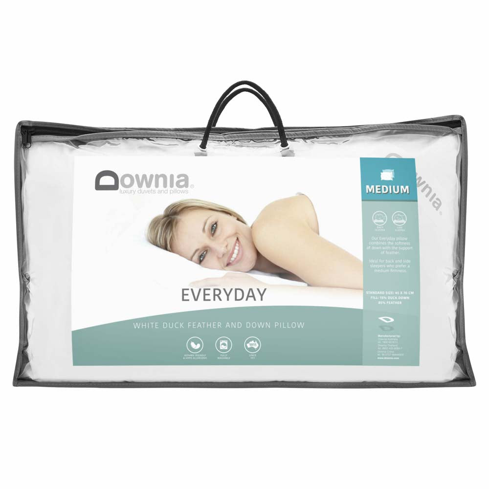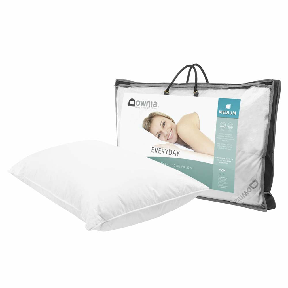 Downia Everyday Collection Standard Medium Size Pillow is ideal for side and back sleepers. This premium feather and down pillow provides both softness and support to the head and shoulders.