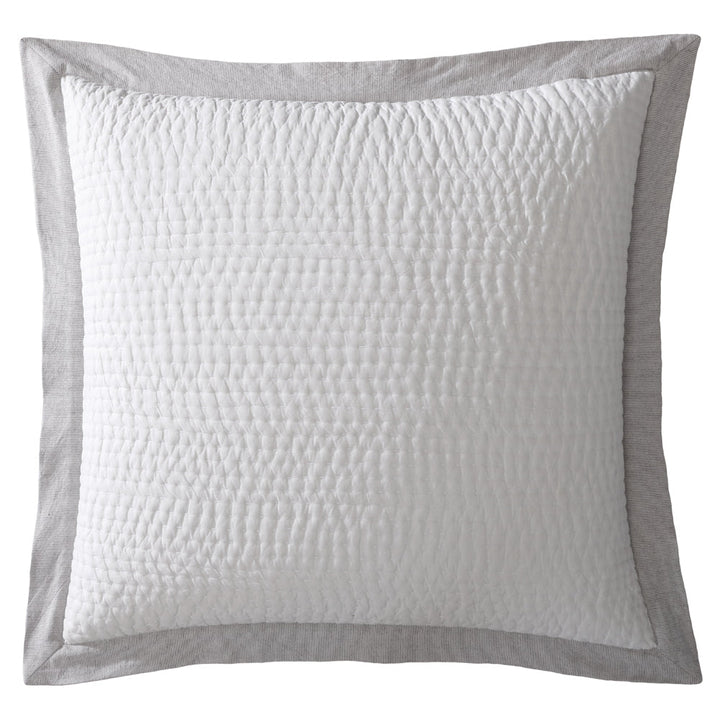 Private Collection Felix Charcoal European Pillowcase is a stylish design that artfully employs a simple quilted aesthetic to create the illusion of hand stitched lines. The contrasting colours of Charcoal delicately highlight the soft white background, lending a complex touch to your bedroom styling. The tailored finish is accentuated by the attached flange featuring a classic pin stripe design, adding a refined and contemporary twist to the collection.