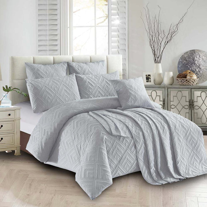 Concierge Firenze Silver Square Filled Cushion invites a contemporary touch to your bedroom. Designed with embossed geometric lines, this quilted cushion is made from soft, light polyester. Complete the look by introducing the matching Quilt Cover Set and European Pillowcase to your bedroom. Also available in Ocean, Pink Sand and White.