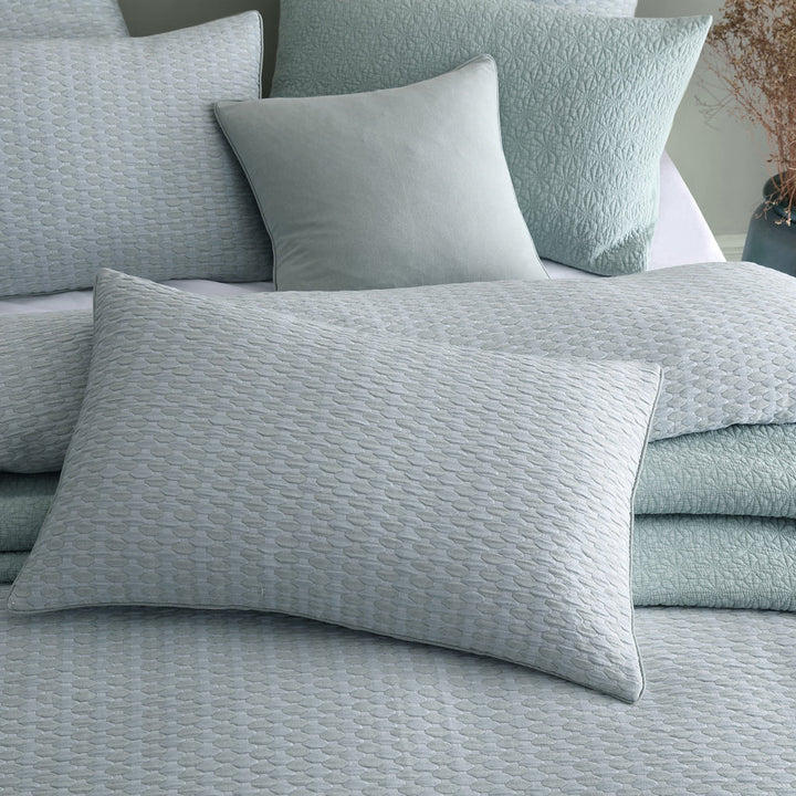 Platinum Logan and Mason Frankie Sage King Bed Quilt Cover features a natural touch of texture, the honeycomb waffle structure of Frankie delivers a striking and timeless style to your bedroom. The delicate colour variations within the design adds another dimension and makes it the perfect fabric to pair with any neutral accessories. This minimalistic design seamlessly pairs with a number of styling finishes so you can create your own unique look.