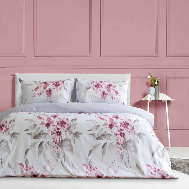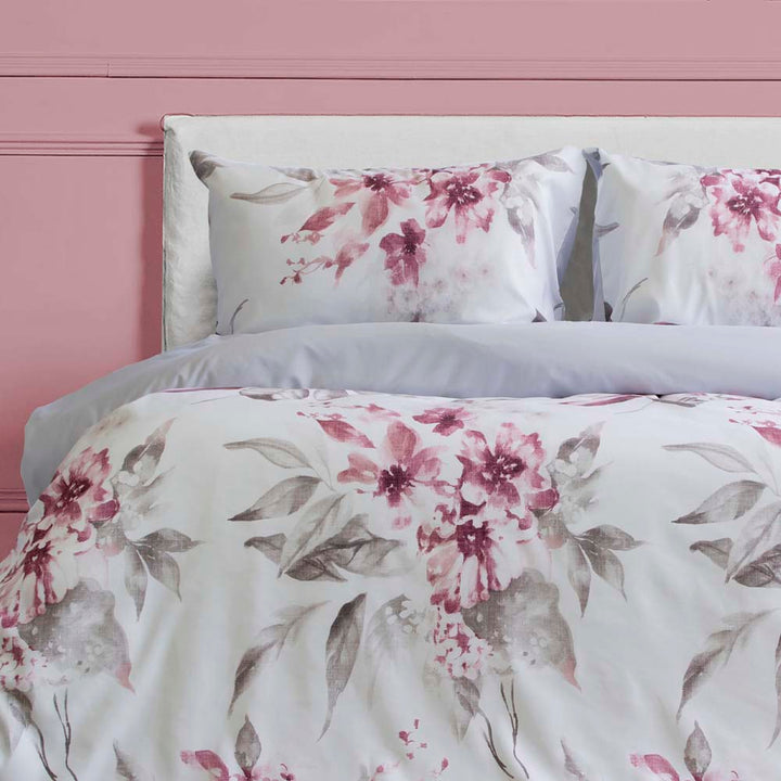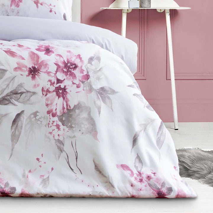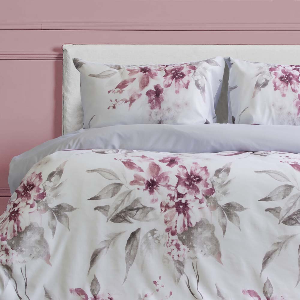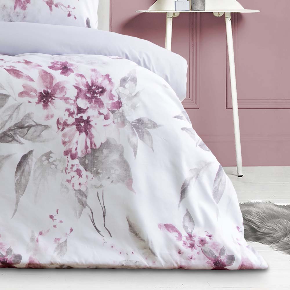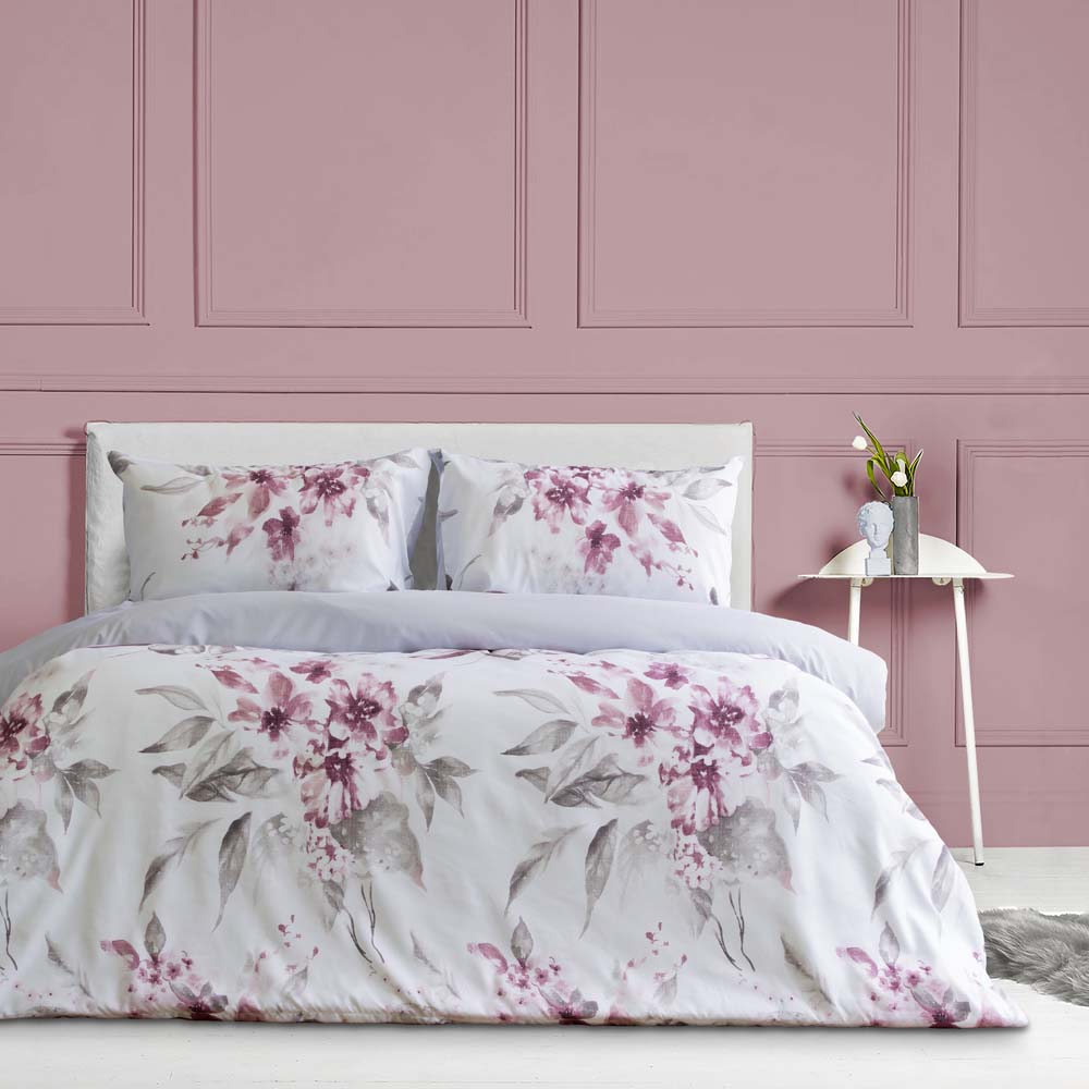 Ardor Boudoir Ginnifer Multi King Bed Quilt Cover Set welcomes warm plum tones to your bedroom. Bold flower graphics paired with crisp, white sheets to create a sharper, more modern look.
