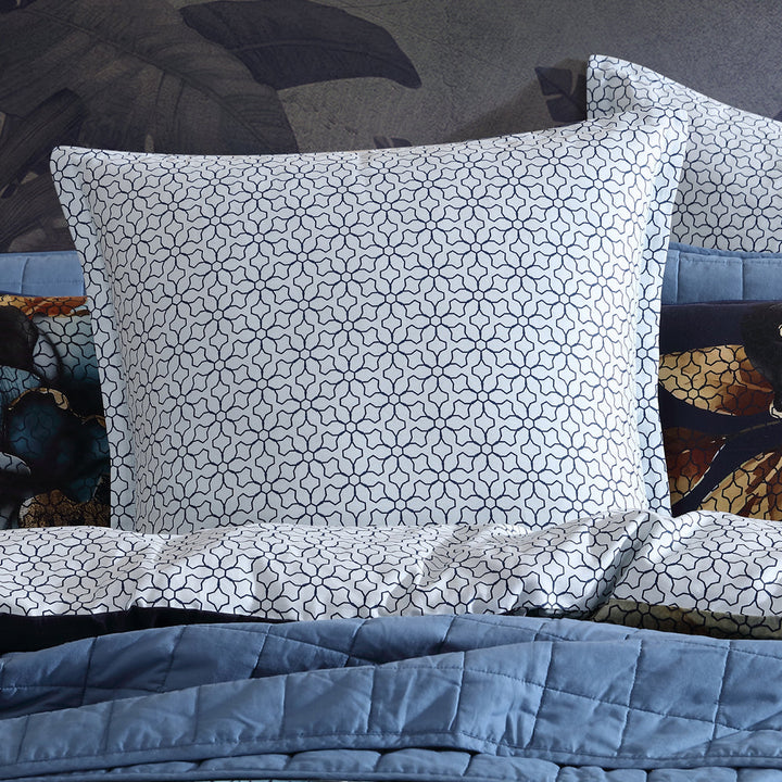 Logan and Mason Golden Glow Navy european pillowcase is a simple geometric pattern, a modest design finished with a 2.5cm flange trim.