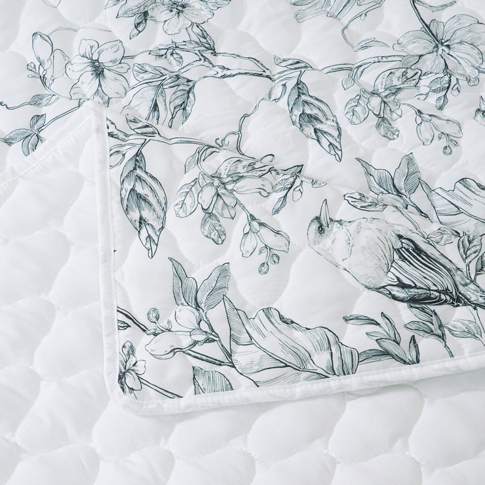 Bianca Gracie White Queen Bed Bedspread Set is a delicate and timeless design that transports you to the fresh countryside. Contrasted on a fresh white background, stunning floral outlines in black cascades over the entire bed. Completed with a beautiful, sophisticated tailored edging, Gracie is the perfect bedspread for your boudoir.