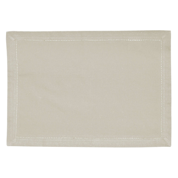 Dress up your table with Elegant Hemstitch tableware. This collection will add a touch of sophistication to your dining room. The Elegant Hemstitch Placemats in Oatmeal are perfect for that special occasion but don't shy from everyday use in a classy dining room. The simplicity of the design is stylish without clashing with your furniture.